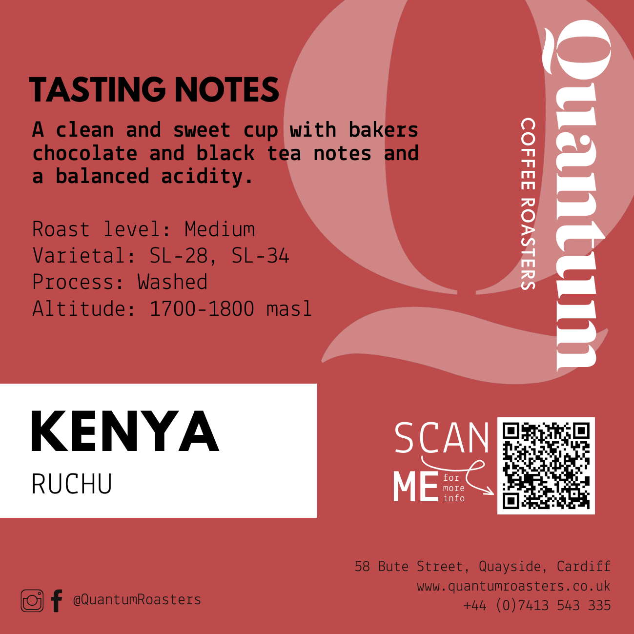 Our Ruchu coffee comes from Kandara in Muranga County. Situated at 1,700 meters above sea level, allows for favourable, slow growth. The coffee also benefits from the distinct red, nutrient rich volcanic soil present in these parts of Kenya. The coffee is processed at the Ruchu Factory, which has approximately 700 active members delivering to it from a total coffee growing area of 350 hectares. Together, they produce roughly 335 tons of cherries annually. The factory has a substantial history that reaches back to the independence period in 1961.